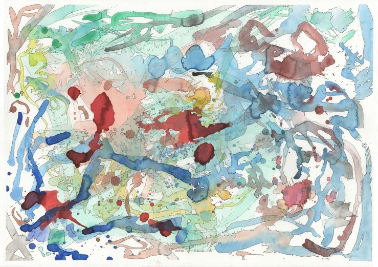 Underwater · 2017 70x50 cm Acuarela sobre papel Basik Guarro 300 g/m2 · Watercolors on paper · La realidad y la abstracción tienen lenguajes aparentemente distintos, que pueden encontrar maneras de acercarse. Ese encuentro se da en un terreno desconocido hasta ese momento. Reality and abstraction have apparently different languages, that can find ways to get closer. This meeting takes place in unknown terrain until then.