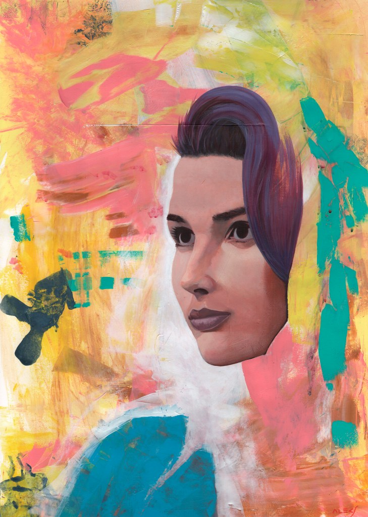 Naz · 2018 45x35 cm Acrílicos y pasteles al óleo sobre papel Basik Guarro 300 g/m2 · Acrylics and oil pastels on paper