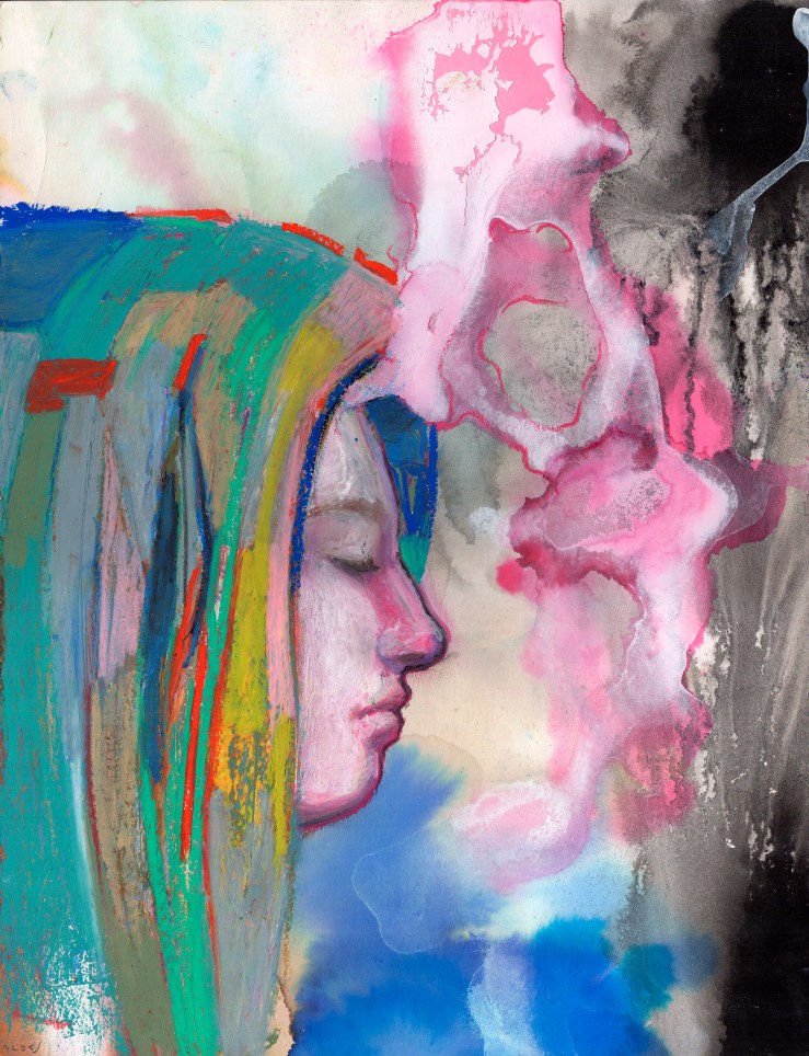 Silencio · 2021 45x35 cm Acrílicos sobre papel Basik Guarro 300 g/m2 · Acrylics on paper · Del silencio, brota. From silence, it springs.