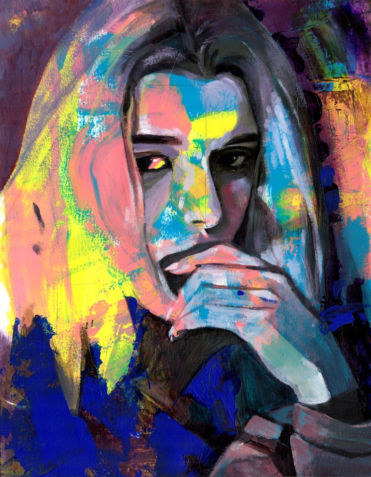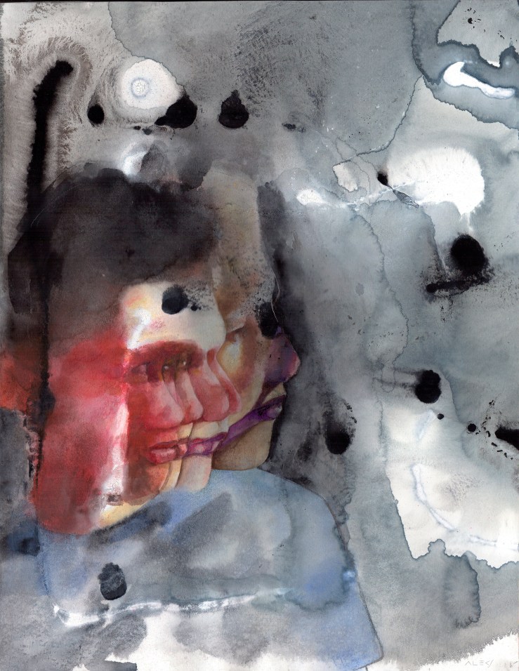 Quantic boy · 2021 45x35 cm Acrílicos sobre papel Basik Guarro 300 g/m2 · Acrylics on paper · El tiempo no es lineal, todo está superpuesto. Time is not linear, everything is superimposed.